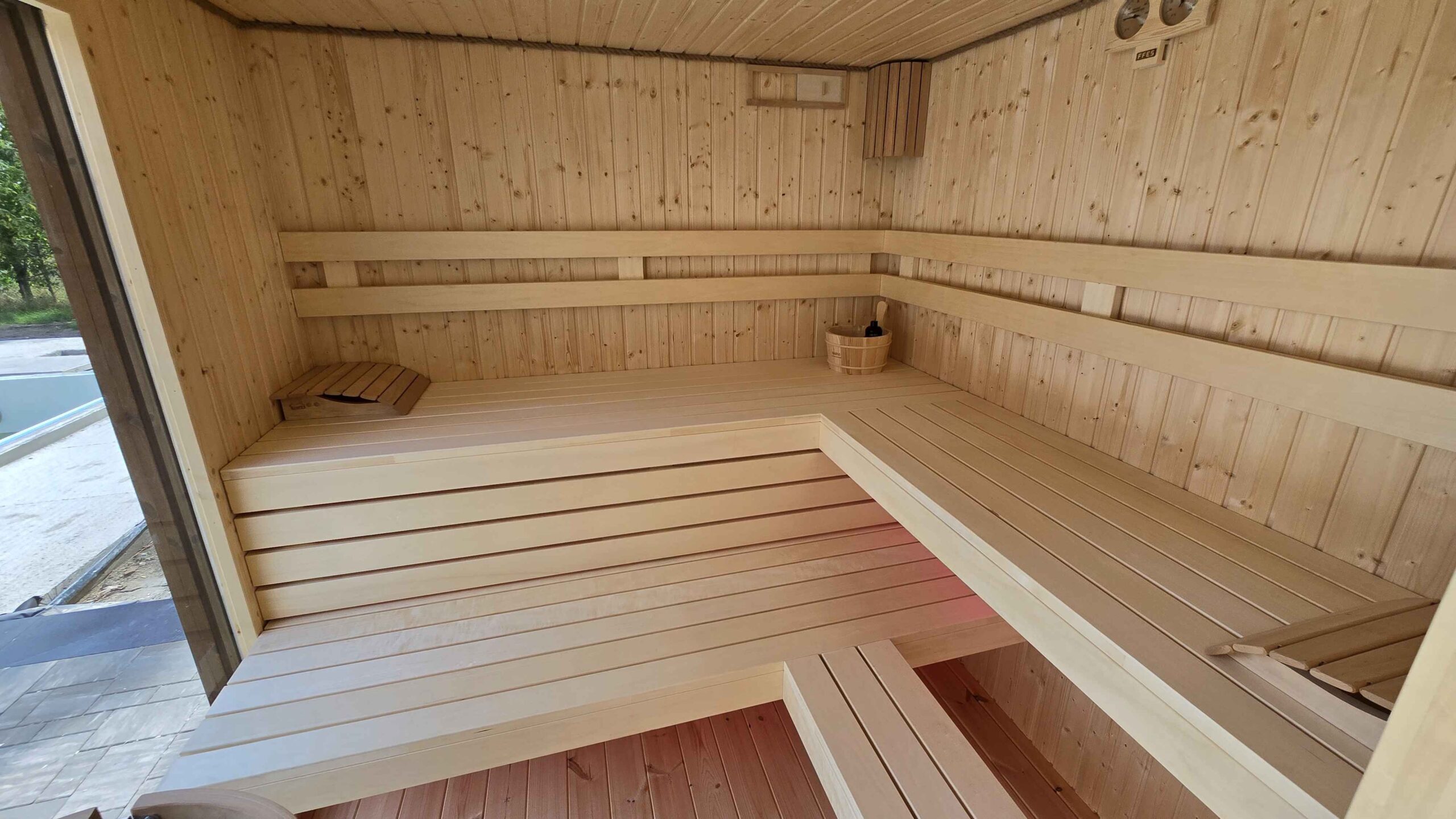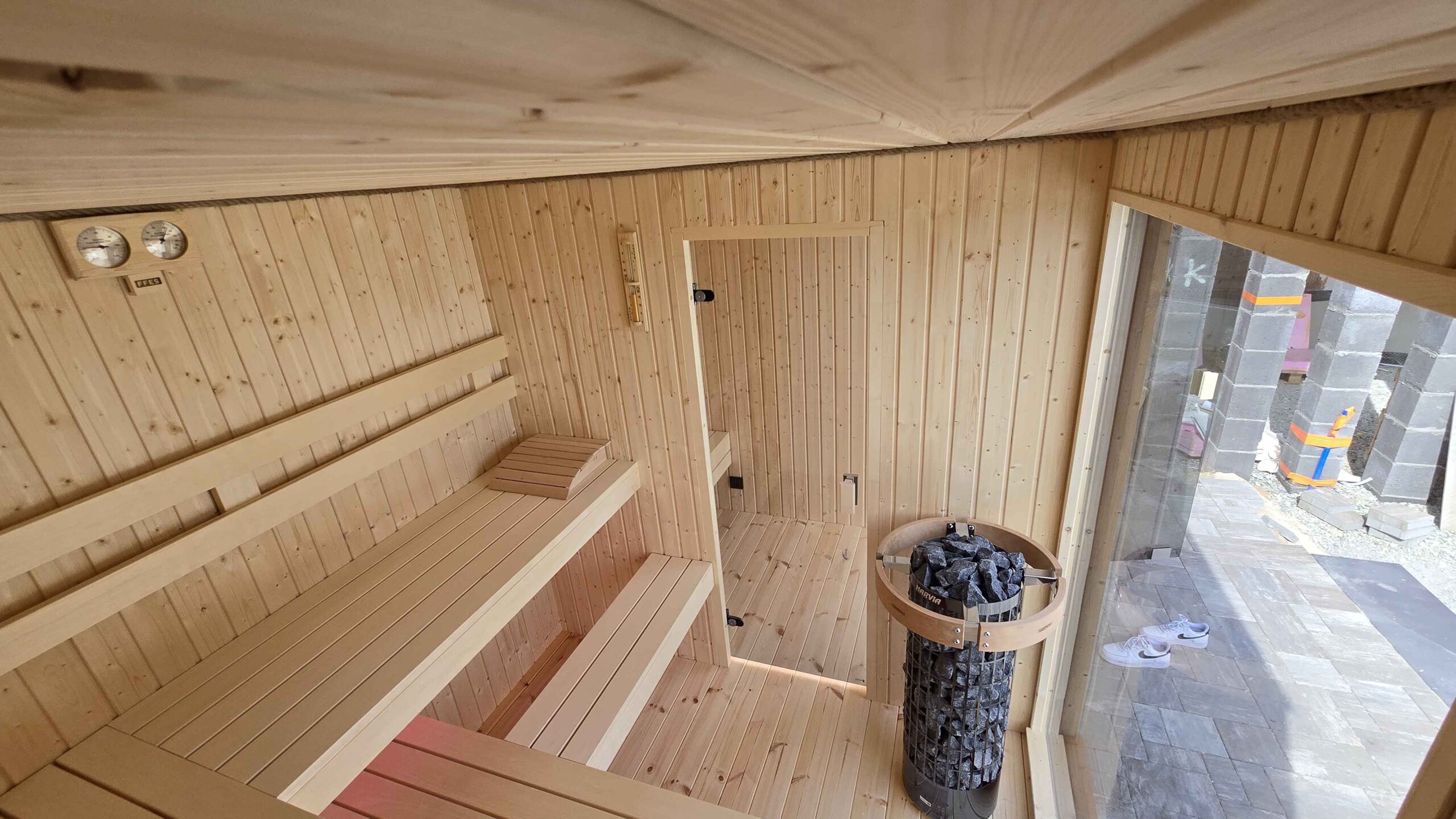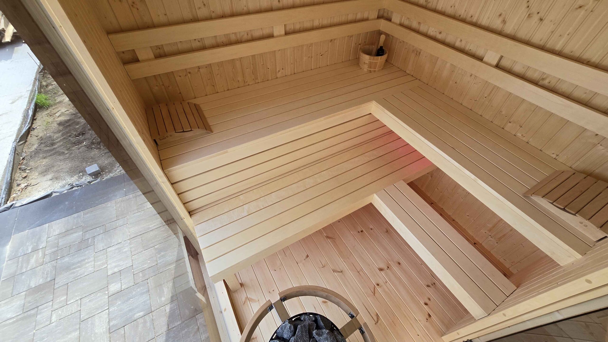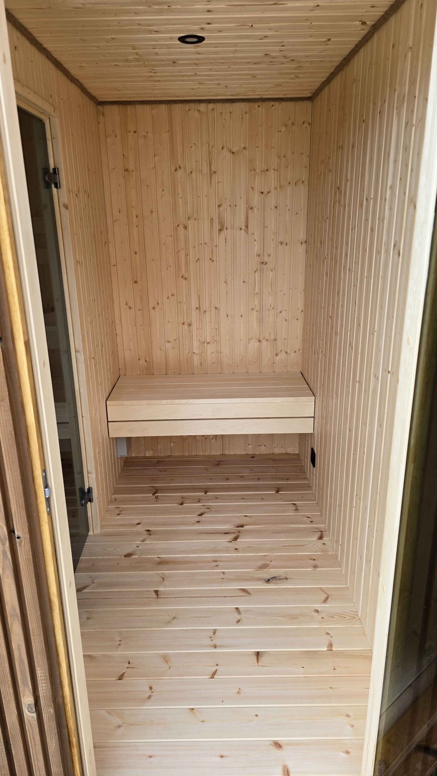 Wir haben uns für eine vollständig individuell angepasste Sauna entschieden, die perfekt auf unseren Raum abgestimmt ist. Das Ergebnis? Ein luxuriöser privater Wellnessbereich direkt in unserem Garten.